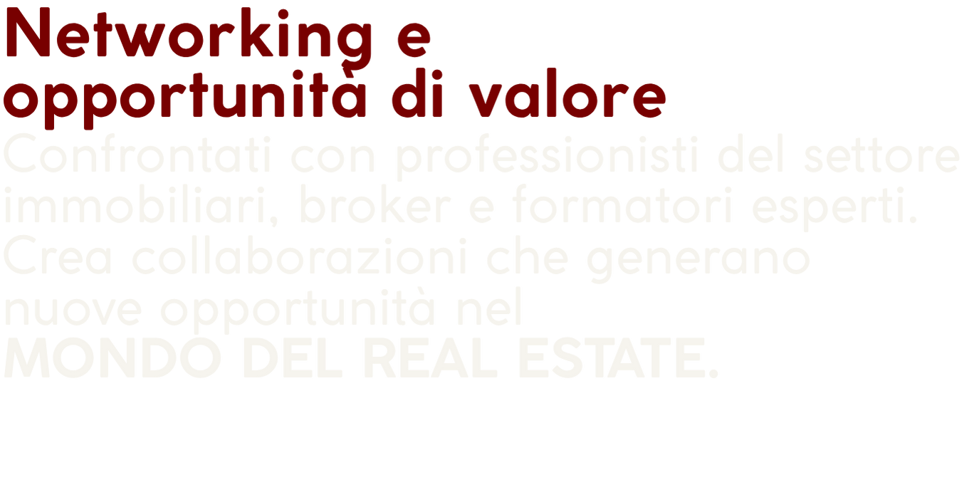 agenti, broker e professionisti che condividono esperienze reali, visioni innovative e strumenti concreti per crescere nel mercato immobiliare.